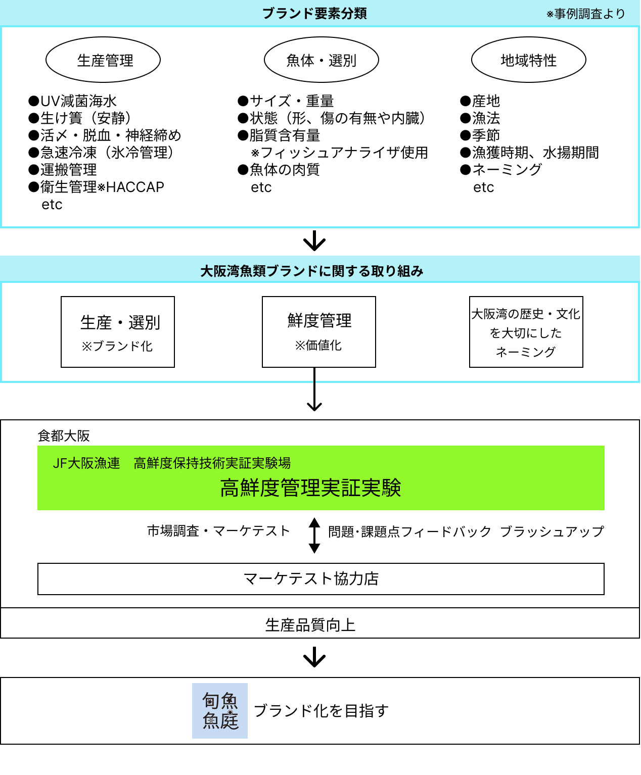共同出荷等の販売力強化事業 魚庭旬魚ブランド化にむけて 高鮮度保持技術実証実験 本事業について 魚庭旬魚ブランド化にむけて 各地のブランドルールなどの事例調査を整理。大阪湾の魚類に関する取り組みを行う。 魚庭旬魚 Naniwa Shungyoプロジェクトポータルサイト