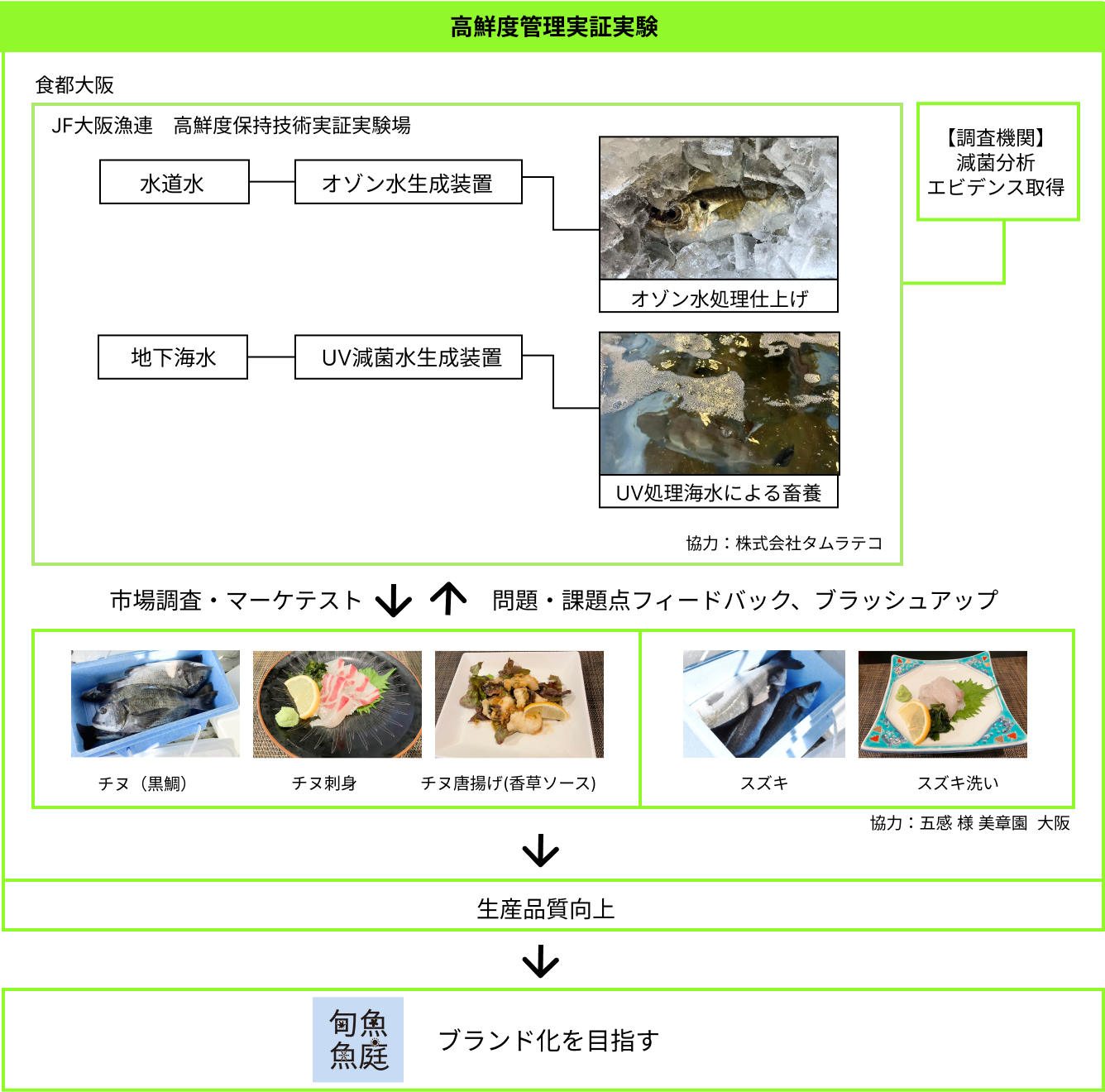 共同出荷等の販売力強化事業 魚庭旬魚ブランド化にむけて 高鮮度保持技術実証実験 本事業について 高鮮度保持技術実証実験 魚庭旬魚では高鮮度保持技術を施した魚介類によって、大阪産魚介類の認知度向上・ イメージアップを図ることとし、オゾン等による高鮮度保持技術の確立を目指す。 魚庭旬魚 Naniwa Shungyoプロジェクトポータルサイト